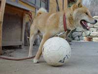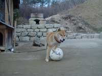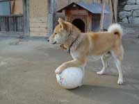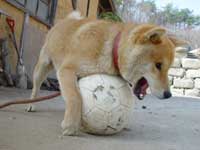 バレーボールや軟式の野球ボール、ゴムボール、カラーボールなど、見つけると必死になって取りに行きます。最近、特に夢中なのは、サッカーです。