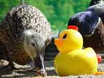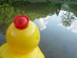 北登は、散歩をするとき真っ先にアヒル村長のいる石に向かい、アイガモたちは、昼の間はほとんど池の中で過ごし、のどが渇くと、溜め池の水ではなく、溜め池に注ぐ竹の樋に集まってそこの水にくちばしをつけています。