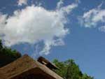アヒル村長のいる水溜石の水は、キラキラと星のように光り輝き、畑の脇の澄み切った小川は、底の小石がくっきりと見えるほどに透き通ります。そして、一面に水の張られた田んぼにはっきりと映るのは、青い空、白い雲、みどりの木立、茅葺きの家・・・。水面は春の風が吹くたびに小さな波を立てています。