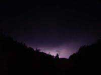 次の日は雷が鳴りました。雷鳴がとどろくと、今度は虹の懸かった空と反対の田んぼの奥の空に、紫色の閃光がきらめきました。