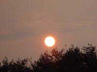 山の稜線のすぐ上から高い空に、縦に太筆でさっとはらったように懸かりました。