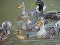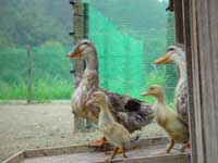 ほたるは、アイガモのいる溜め池の上の小川の周りでたくさん見ることができました。日も暮れてしばらくした夜8時ごろ、闇に黄緑色の神秘的な光の線が描かれます。