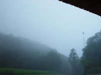夕方、突然に降り出した雨は、激しさを増して地を突き刺し、空を覆う真っ黒な雲は、幾層にも重なって屋根のすぐ上まで垂れ落ちてきそうです。