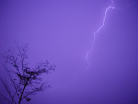 一瞬、真っ暗なはずの空が真昼のように光りました。その直後、地響きのような雷鳴がとどろき、ガラス戸がガタガタと音を立てて揺れ、地震のような震動が床下から伝わってきます。