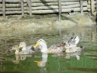 溜め池のアイガモたちも、水田のアイガモたちも、小屋の中に非難して、体を寄せ合って首をすくめています。