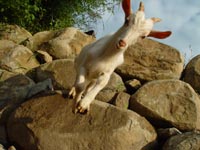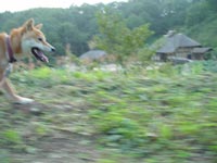 つかさとつばさは、克服の喜びを覚えたようで、何度も石垣の上に登っては、ジャンプしています。つられて母親のマサヨまで真似をして跳ぶようになりました。