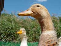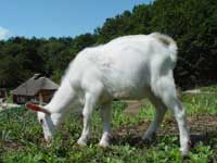 太陽は、体つきがぽっちゃりとした感じからたくましくなってきた「つかさ」と「つばさ」の真っ白な毛をさらに輝かせ、浮き立たせます。そして、さらに高く昇るにつれ、眩しさも増してくるのですが、こんな日差しの強い日は、北登も暑がって木陰で涼みます。