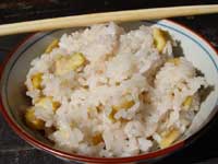 いがが茶色くなって割れた栗は、ちょうど食べごろ。さっそく、栗ご飯にしていただきました。
