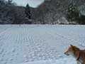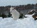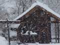 週のはじめ、ここDASH村にも雪が降りました。 夜に降り出し見る見るうちに積もり、朝見てみると一面白銀。20センチくらい積もりました。 |