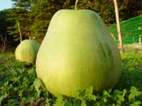 かんぴょうは、葉も茎もつるも一見するとかぼちゃのようなので、間違えてかぼちゃの種を蒔いてしまったのかと思っていました。しかし、夏の陽射しを浴びて日に日にデカカボチャのように成長し、とんでもなく大きなものがごろごろとできました。 そして大きく実った実を、かつらむきのようにむく道具を使ってするすると長いひも状にし、天日で干すと、あの歯ごたえのあるかんぴょうになります。 かんぴょうというと、かんぴょう巻きしか知らなかったのですが、工夫次第で、いろいろとおいしい味わい方があることを教えてもらいました。 |