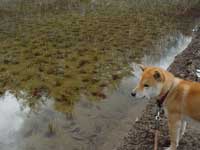 | そんな中、先週のふきのとうに続き、またしても春の気配が。 麦です。 溜め池の下の段の畑に、去年の12月ごろに蒔いた小麦が、芽を出しました。 |