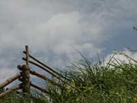 | 梅雨入り前のカラリと晴れた午後、役場の作業中にかすかな鳴き声が聞こえてきた。耳を澄ましてみると、どうやらコゲラの巣からのようだ。もう少し近付こうとしたら親鳥が口に何かをくわえ、巣に戻ってきた。中に引っ込んだ親鳥はすぐまた顔を出し、「ギィ」とひとこと鳴いたあと飛び去っていった。その一部始終を見て、ようやくひとつの答えに達した。 ヒナがかえったんだ! 外からではヒナの姿が見えないけど、心配する必要はなさそうだ。「ピィピィ」鳴く声は元気そのものだし、親鳥が餌を運んでくる回数が多いのは、よく食べている証拠だ。 |