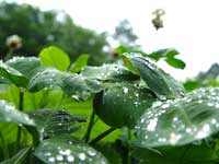 | 雨が降ったあと、村を歩くのは楽しい。 土や植物を混ぜて薄くしたような・・、うまくは言えないけど、そんな雨上がり特有の匂いが村いっぱいに広がっている。その匂いをかぐと、今まで見た雨の情景がふわっと頭の中に浮かんでくる。ゆっくりと這うカタツムリ、咲き群れる紫陽花、大空にかかる虹。この匂い一つで、綺麗なものをたくさん見たような、優しい気持ちになれる。 雨上がりは晴れた日にはない綺麗な風景もある。 緑の上に乗っかる透明な球。 水と葉の性質が生んだこの球は、晴れた気分と雨の余韻を感じさせる、独特の情景。少しでも風が吹いたり、指で触れたりすると、すぐに壊れてなくなってしまう綺麗な球。 なくなってしまうからこそ尊く、美しく感じられる気がします。僕たちの生きるこの世の中には同じような事がたくさんあるのではないでしょうか。 |