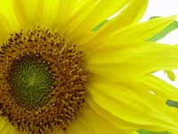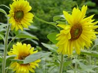 | 七月に入り、梅雨らしい、雨の降る日が多くなった。しかし、その雨と雨の晴れ間には、本格的なギラリとした夏の日差しがこぼれ、空には夏らしいくっきりとした雲が浮かぶ。そして、ひまわりが顔を出した。 |