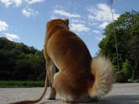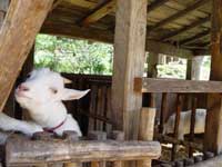 | こゆきとこてつが妙によく鳴くなあ、と思っていた矢先のことだった。西側の里山が小刻みに揺れている。音がものすごい速さで近づいてくる。こゆきとこてつはさらに鳴き、西側から地面の色が濃くなってきた。次の瞬間には体が濡れて、夕立だということが分かった。慌てて作業中の役場に身を隠す。 一瞬にしてDASH村が雨雲に覆われ、一瞬にして村が洗われ、一瞬にして去っていった。一瞬だったのに、村の所々に水溜りができ、随分長い間降っていたような雨上がりの景色。いち早く夕立に気付いたこゆきとこてつは、そのあと何もなかったかのように落ち着いているけれど、僕と北登はあまりの迫力に唖然としてしまった。 古民家の茅葺き屋根から落ちる滴の向こうには、もう、雨雲が去った青空が広がっていた。 |
