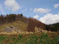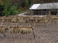 | 春、良質の土づくりから始め、根も葉も順調な苗に育っていた三年目の田んぼ。しかし、夏、長い雨と低温と日照不足で急に成長にかげりを見せた。先人たちの知恵を借りて、どうにか成長を促そうとしたけれど、秋、予定遅れの収穫は、豊作とは言い難かった。達人である明雄さんでも「米づくりは難しんだ」と常々言っていたけど、今回、その言葉が身に沁みて感じられた。 |