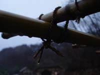| 毎回のことながら、明雄さんの持つ知恵や技には本当に感服する。シシオドシを見ながら、感心していると、「大したことじゃねぇよ、誰でも出来るよ」と明雄さんは笑う。シシオドシの音を聞きながら、弾ける水しぶきを見ながら、僕は「これが先人たちの常識であったのではないか?」と考えた。冷害、猪・・・いろんな災害があるけれど、先人たちは、これらを克服しなければ、その年に食べるものがなくなってしまう。そうであるからこそ、何年もの時間を経ても、変わらず親から子へ、年配者から若者へと受け継がれてきた。 その大事な知恵と技に僕は今後もさらに触れ、その伝承者の1人となりたいと思った。 |