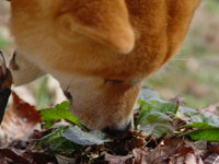 | 散歩中の北登は今まで以上に村中をくまなく嗅ぎ回る。突如として、道端で立ち止まったり、急に落ち葉の中に顔を突っ込んだりする。そこに気になるものが隠れているのか、美味しいものがあるのか、まだ猪を警戒しているのかは、分からないけれど、そういった姿は、とても機嫌が良いように見える。もしかすると北登はこの寒さに、もうすぐあれがやってくる、と思って嬉しくならずにはいられなかったのかもしれない。 12月7日、暦では大雪。文字通り、今度は雪が大なる時期であるけれど、DASH村は初雪も未だ降っていない。時折空を見上げる北登は、何かをねだっているようにも見える。 |