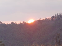 | 明雄さんと共に見に行った初日の出。やや曇り気味だったけれど、しっかり赤い丸い初日の出が確認できた。特別な日に見るとやはり格別で、太陽は心にも体にも良さそうな光を放っていた。毎年、初日の出で驚くのは、思ったより太陽の動きが早いこと。しかし、毎年恒例のその驚きは、今年、それほど感じなかった。それに気付いた時、今までより自然と共に暮らせていたのかと嬉しくなった。 その太陽に合掌し、願い事。目を閉じ、村が平和であると共に、自分が躍進できることを願った。 |