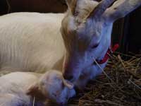 | 最初、僕が目にした時、仔やぎはマサヨの部屋で前と後ろ足を投げ出して横たわっていた。地面が凍っているのが、見なくても踏み心地で分かる様な寒い夜、とにかく家の中に連れて行き、仔やぎの体を温めた。投げ出した足もそのままで、鳴くことも無く、ただお腹が小刻みに震えるだけ。 専次郎さん、のり子さん、 三瓶獣医や、明雄さんの手を借りて、朝方になってようやく立てるようになり、鳴くようになり、マサヨの乳を飲み始めるようになった。何とか立っている状態から一歩また一歩とマサヨに近寄り、顔を上げて、口先で乳を探る仔やぎ。産まれて間もないけれど、必死に生きようと力を振り絞っていた。小さな命にここまで、生きようとする力があるものなのかと、感服した。 |