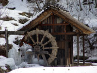 | 日が落ちると光の春が嘘だったかのような寒い夜がくる。寒い夜だからこそ、囲炉裏にぶら下がる魚、その下にぶら下がる鍋がとても暖かい。役場の自在鉤は、手作りの温かみもあり、よりいっそう暖く、心も和む。 |