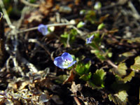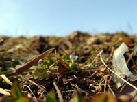 | 先日初めて顔を出したオオイヌノフグリは、雪で見え隠れしながらも、少しずつ増えてきた。増えたといっても、小さな花だから、少し離れて見てみると、咲いているのかどうかも分からなくなる。村を一瞥して、いろんな色が目に飛び込んでくる日は、まだまだ先になりそう。まずは小さいのから、といった感じでDASH村にはオオイヌノフグリがひたむきに咲いている。 |