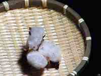 | 昨年の春に植えた綿花は、他の作物と同様、冷夏の被害を大きく受けた。広い畑からとれたのは、手のひらにのるほどの小さい綿。その綿はとても白くて綺麗で、とても柔らかくて肌触りが良かった。そして何より暖かい。 手のひらの小さな綿は、一年近く見守り、世話をしてきたことを思えば、残念な結果となってしまった。けれど、よくよく考えてみると、こんなものが畑から収穫できたこと自体、凄いことだ。そう思うと、この小さな一つの綿のために今まで時間を費やしてきたことにも納得が出来た。綿の心地良さに、納得させられたのかもしれない。 衣料を主として、現在多く使われている綿を見ると、いつも人の肌の隣にあったり、いつも大切なものの周りにあったりする。何かと優しく包んでくれる綿。収穫したばかりの綿には、そんな優しさがもっとぎっしりと詰まっていたような気がした。 |
