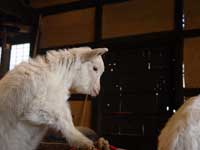 | 三月三日に初節句を迎えたこうめ。近頃では体の成長よりも、走ったり、跳んだりといった行動の成長が目立つようになった。古民家内を駆け回られると、捕まえるのがとても困難で、はしゃぎ疲れるのを待つばかり。駆け回るだけならそれでよいのだけれど、跳びはねて、重ねた薪の上に乗ったり、樽の中にはいったりする時は、ただ疲れるのを待つというわけにもいかない。怪我しないかハラハラして目が離せず、まるで親にでもなった気分。心配することが多いけれど、元気過ぎて心配なのだから・・・と、よく自分に言い聞かせる。産まれた時の心配を思うと、今の心配が嬉しいと思うべきかもしれない。 |