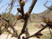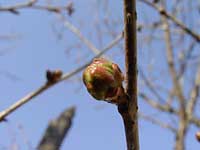 | しかし、木に近づき、つぼみをひとつひとつ手に取りながら見てみると、膨らみ始めたつぼみが意外とたくさんあった。膨れたつぼみは、緑とピンクが混ざり合っていてとても綺麗。表面には張りがあり、手で触れるとそのはずみで開花しそうなくらい。 |