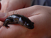 | 今週、はじめての出会いがあった。 洗い場で鍬を洗っていたら、何か殺気のようなものを感じた。ふと下を見ると、そこにはトカゲのような生き物。明雄さんに聞いてみると、どうやらサンショウウオらしい。聞いたことはあるけれど、はじめて見た。はじめてだから、触ってみようと思った。しかし、既に遅かった。僕の中では、もう苦手とする生き物の部類に入っていたようで、どうしても触ることができなかった。諦めかけていた時、明雄さんの手にのったサンショウウオの顔がとてもかわいらしく見えた。僕はもう一度触ろうと思った。しかし、バタバタ動く姿を見て、怖気づいてしまい、結局触ることは出来なかった。 苦手なものが増えたみたいで少し嫌だったけれど、顔を見てかわいいと思えて良かったと思う。「こうやって克服していくのかもしれない」と思った。 |