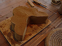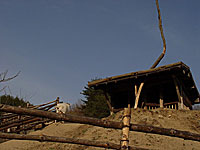 | 役場を一見すると、何か物足りなさを感じる。しかし、その物足りなさを感じるのもあと少し。村のシンボルを象った鬼瓦がもうすぐ焼ける。必ずうまく焼けるとは限らないけれど、全力を尽くしたせいか、失敗する気はほとんどしない。自分たちで作った鬼瓦が屋根に上ることを思うと、とても興奮する。既に葺かれている瓦たちも、そんな気持ちで待っていると思う。 |
