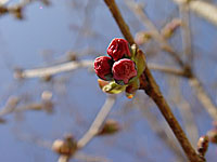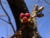 | そんな役場の前では、桜の木が花を咲かせようと奮闘している。 つぼみの先端はパックリと割れて、その中から濃いピンクの花びらが溢れ出ている。花びらは、まだ開こうとはせず、ギュッと縮こまっている。それは外の空気や、光に触れ、不安がっているように見える。まるで、さっきまでお腹の中にいた赤ん坊のようだ。少し弱々しい様子もそっくり。さらに、ひと安心だけどまだまだ心配している僕の心境もどことなくそれっぽい。 |