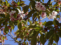 先週満開だった桜。花びらがゆらゆらと舞い落ち、今では緑色の葉の方が目立つようになった。暖い風に吹かれ、木を離れてゆっくりと地面に落ちる花びらは、とても綺麗でもあるけれど、少し悲しい。桜の絨毯に日本の心を感じた。 |
