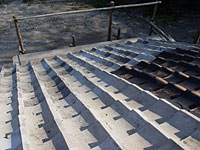 | 役場には屋根へと上る足場がまだ組まれてある。僕は鬼瓦の成功の自信からか、もうこの足場から屋根に上ることもなさそうだと思った。そして、せっかくだから鬼瓦になったつもりで屋根に上ってみた。役場の屋根の上で何をするでもなく、ただひたすらボーっとしてみた。広い土地で周りの山も高いから、屋根に上ったくらいでは、そんなに景色は変わらないと思っていた。しかし、ここからは山羊小屋が見え、鴨小屋が見え、田んぼ、畑、果樹園が一度に見える。いつもは鳴き声だけが聞こえるけれど、ここからは鳴いているところも見える。人を意識しない、動物たちの本当の素顔を見られたような気がした。さらに、ここからは空が近い。ほんの少し高くなっただけなのに、視界のほとんどを空が占め、距離が近いというか、空を身近に感じることが出来た。 屋根は上るためにあるのではないけれど、こういった非日常的なことをすると、いつも見ているものでも、いつもと違うものが見えてくる。花に顔を近づけてみたり、北登やこうめの目線になってみたりするのと似ている。 傍から見ると、ちょっと変わった行動で変に思われるかもしれないけれど、そこにはいつもとちょっと変わった景色があり、ちょっと変わった趣があると思う。 |