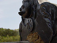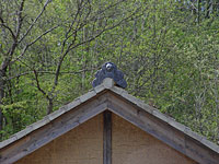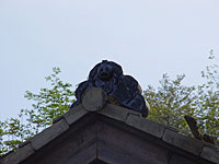 遂に焼き上がり、完成した鬼瓦。抱えている時はあんなに大きかった鬼瓦も、役場の屋根に乗せて見上げてみるととても小さく見える。でも、小さくてもあるとないでは役場の見た目が全然違う。鬼瓦があることで、役場全体がますます家らしく、立派になった。鬼瓦は建物のほんの一部だけど、これだけ手間隙かける甲斐がある。完成した村役場を見てそう感じた。 |