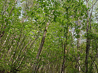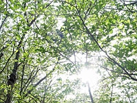 五月に入り、村を囲む山々が急に緑色を多く、濃くした。里山に入り、見上げてみると、光る緑色がとても綺麗で、ただでさえ美味しい空気もさらに美味しく感じられる。里山だけでなく、田んぼのまわり、溜め池のまわり、果樹園などいつも見ている場所も少し前よりだいぶ緑が増えていると思う。そして、これから田んぼにも畑にも緑が増えると思うと気持ちが引き締まるとともに、嬉しいとも思う。 |