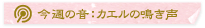 | 夕方になると村中に響き渡るカエルの鳴き声。雨がよく降った今週は、一段と大きく聞こえた。いつもくらいの音量なら、聞こえていても聞こえないふりをするのだけれど、この大音量ではそうはいかなかった。 |