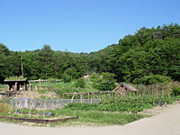 | やはり一番夏を感じるのはこの暑さで、外で作業するとすぐに汗が湧いて出てくる。そして、頭に巻いているタオルは汗を吸い込み、だんだん重くなる。耐えられない重さではないけれど、その重さがまた「暑い」という感覚をいっそう強くする。 そんな暑さの中でも、何故か古民家の中は涼しく、床は適度に冷えていて肌をあてるととても気持ちがいい。だから、つい服をめくりあげ、出来るだけ肌をくっつけようとして、床に張り付いてしまう。そして、自分の体温で床が暖かくなってしまうと、ゴロッと体を回転させればまた新鮮な冷えた床とくっつくことができる。気持ちよく横になりながら、適度な運動もできる古民家。昔の人は本当にエライ。 |