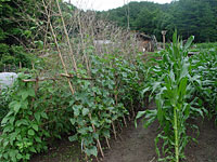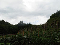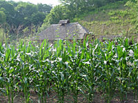 印象的なのは夕暮れ時。朝早くから照りつける太陽が、ようやく沈み始めると、雲がピンク色に染まり、それにともなって村全体も黄色い照明をあてたような色になる。日中に、湧き出て肌に残る汗も、この時スッとどこかに消える。そして、ヒグラシの鳴く声が耳に入ってくる。この時にだけ聞こえるものだから、ヒグラシの「カナカナカナ」と鳴く声は、とても涼しい音色に聞こえてくる。ヒグラシはまるで、風があるときにしか音をださない風鈴のように、暑い夏の日に清涼感溢れる音を奏でている。 |