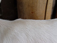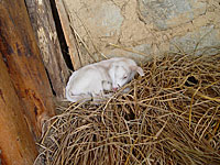 八木橋待望の初孫は、体がこうめの産まれた頃よりもまだ小さく、体重は2.5キロ。毛の色は真っ白で背中に少しだけみのりと同じ茶色い毛が生えている。長くスマートな足はつかさに似ている。 |