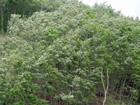 | 大きな台風は、DASH村の木々も揺らしていった。ただの風なら里山の木も「ザワザワ」といった音を立てて揺れる。しかし、今週の里山は、「ザーーー」と、まるで大きな波のような音を立てて揺れた。 音だけではない。里山は色も変化した。その時だけは、緑が薄くなった。 強い風で木の葉が落ちたのではなく、風に吹かれて裏返ったからだ。多くの葉は、風が吹いている間ずっと裏側の薄緑の部分をこちらに見せていた。 |