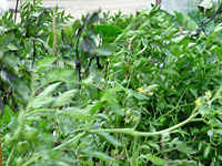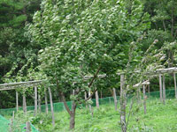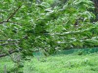 | 今回の台風は、里山を見ただけでも、音で、色でその大きさが分かる。しかし、そんな巨大な台風ではあったものの、村の作物は無事だった。もちろん無傷とはいかなかったけれど、事前に対策した甲斐もあり、最小限の被害におさえることが出来た。せっかく順調にここまで生長してきた今年の作物。そう簡単にやられてはたまらない。 |