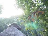 | 縁側でメロンを半分に切ると、中から赤い果肉が見え、すぐに甘い香りがプンプンした。他のものは知らないけれど、立派なメロンであることがすぐに分かる。手に持って一口食べてみると「うまい!!」メロン味のジュースでもお菓子でもなく、正真正銘のメロン。味も食感も手に垂れる果汁も、本当に美味しい。 メロンをつくり、食べたことで、高級とされるのが体と舌をもって理解できた。そして、これからは人の家でメロンを出された時は、手が進みすぎないよう自分を抑えなければならないと思った。 |