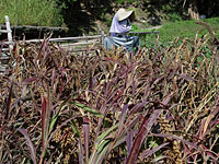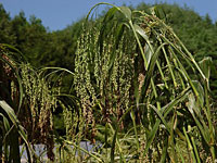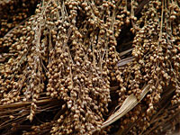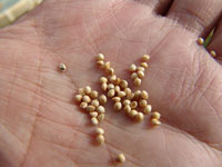 | 土壌を良くするため、春にまいたアワとキビ。僕は見たこともなく、もちろん食べたこともない作物。しかし、話だけは明雄さんや孝子さんから聞いていた。食べ物が少ないとき、お米などの代わりに食べていたらしい。そんな話を聞いていたこともあり、僕は土壌のこと以上に、その味の方にとても興味があった。 |