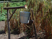 | 里山からも畑からもすっかり緑が少なくなった。アワとキビを育てた水車上の土地も長い切り株が残っているだけで、殺風景になった。しかし、残った切り株を引っ張ってみると良く張った根が柔らかい土を絡めて出てくる。そして、そこには春にいなかったミミズの姿がある。アワとキビは確実に土を良くしてくれた。食べても、土にとっても本当に有難いアワとキビだった。 |