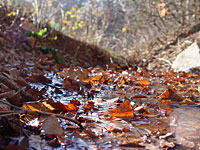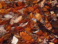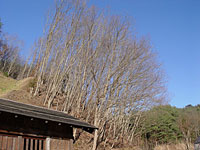 | 特に里山の木々は、葉がほとんどなくなって音もしなければ揺れもせず、ただヒューと風を通すだけ。地面の落ち葉ですら、もう風でカサコソ転がったりしなくなった。既に、木の根や、土手や、沢などの方へ転がされて、そこで留まっている。 だから、風が通ってもヒュルヒュルという寒い音だけが聞こえる。もともと静かな印象を持っていたけれど、冬は本当に静かだった。 |