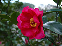 | でも、静かだからこそ、冬はいい。耳をすますと小さな物音が聞こえるように、小さな生命がよく見えてくる。 役場の裏でひっそりと花開かせるサザンカも、殺風景なまわりからすると、よく目立つようになった。遠くからでも赤っぽいのが点々としているのが分かり、いつも目に入る。そしていつも「綺麗だな」と思い、「強いな」と思う。そして、春や夏に咲く花よりも注目され易く、少し得しているような気がして、「しっかりもの」とも思った。 この静かな冬は、綺麗で強いしっかりものにもっと出会えるような気がする。 |