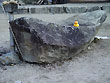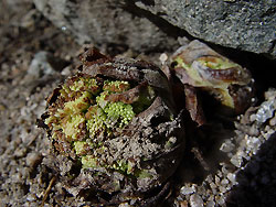 | 転がってきたわけでもなく、誰かが落としていったわけでもない。水飲み場の水がかかったり、それと一緒に泥がかかったりしているけれど、それは、雪の下でゆっくり生長していたフキ。 | ![]() |
