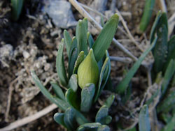 日当たりの良い斜面からは、水仙も顔を出すようになった。槍で突いたみたいに土の中からブスッと現れた水仙は、つぼみが大きく、時期が来れば村一番の大きな黄色を見せてくれそうだ。 フキや、水仙や、オオイヌノフグリや、いろんなものが村のあちこちを色づけていく中、田んぼもまた、本来の色を取り戻しつつある。 |