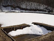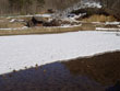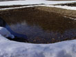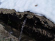 | 切り株を見て、「春だなぁ」と直接感じることはなかったけれど、その横で音を立てて流れる水は春そのものと言った感じだった。これ以上ない透明感と、キラキラと春の日差しを輝かせる雪解け水。田んぼに通じる竹筒から溝へと、勢いよく押し出されていた。触れると冷たいということは知っていても、「温かそう・・・」と感じてしまう。実際に触れてみると、かなり冷たいけれど、これがまた、春を感じさせる冷たさでもあった。 | ![]() |